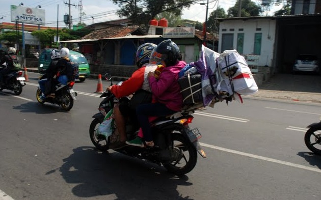 Banyak pemudik yang mengikat barang di sisi samping hingga sangat lebar, ini sangat berbahaya.